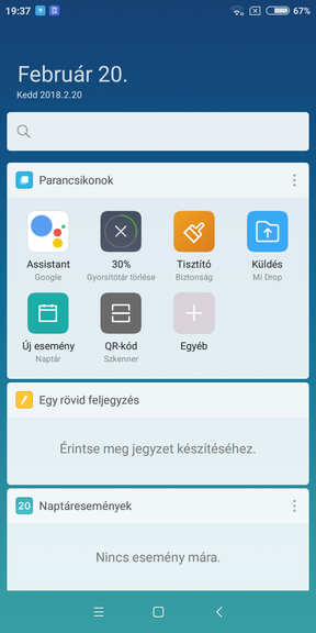 A MIUI, szokás szerint tele van kényelmi megoldásokkal, a hardveres és virtuális navigációs gombokhoz hosszú vagy kétszeri megnyomásra egy halom funkciót lehet rendelni, van lebegő labda, ami a navigációs funkciókon kívül a képernyőfelvétel és képernyő lezárása opciót is felkínálja, az egykezes használatot 4 vagy 4,5 hüvelykes megjelenítés segíti, a gesztusvezérlésről pedig az előző oldalon már megemlékeztünk. Az ujjlenyomat olvasó viszont csak exponálni tud az biometrikus jellegzetességeink felismerésén kívül, ha engedélyezzük a kamerabeállítások között.